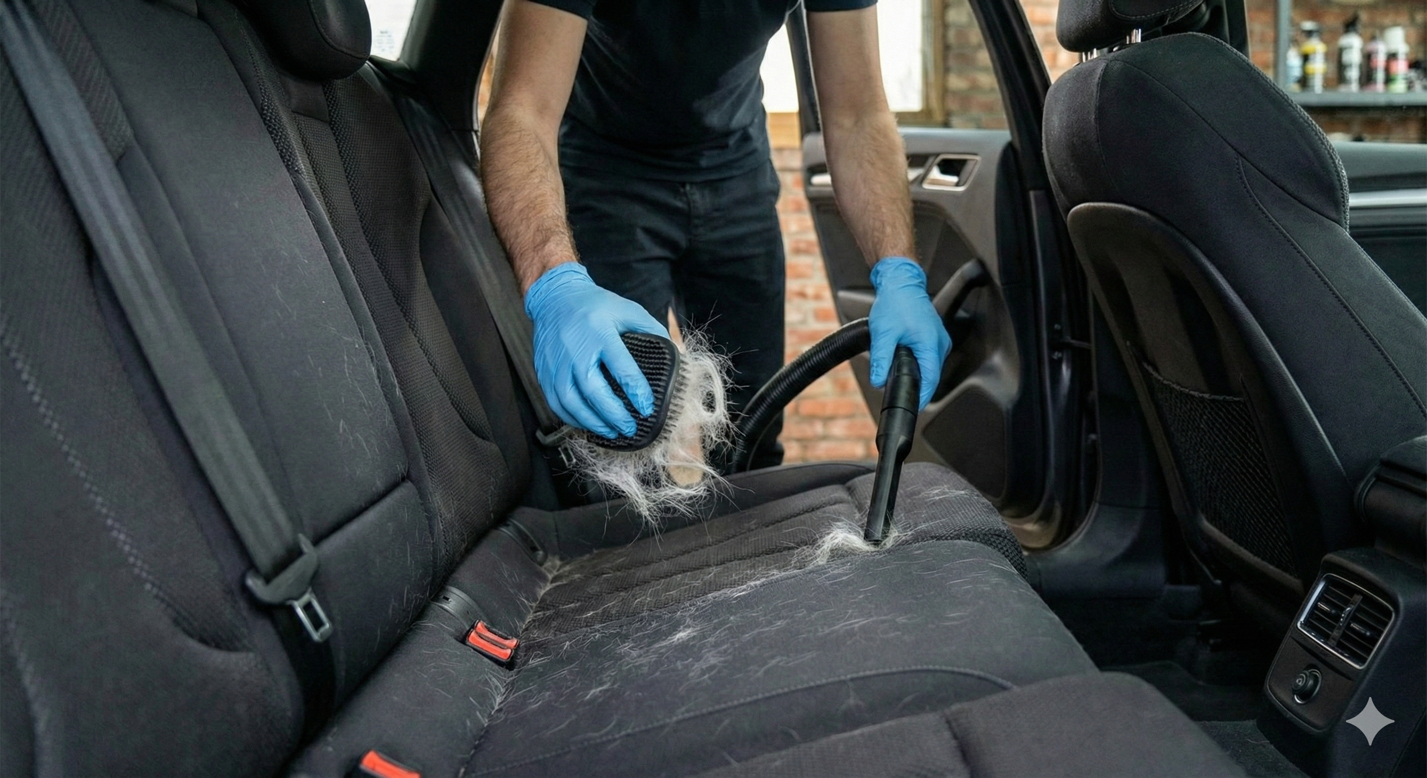 Paciencia y técnica para extraer hasta el último pelo incrustado en moquetas y asientos, dejando el coche libre de rastro animal.