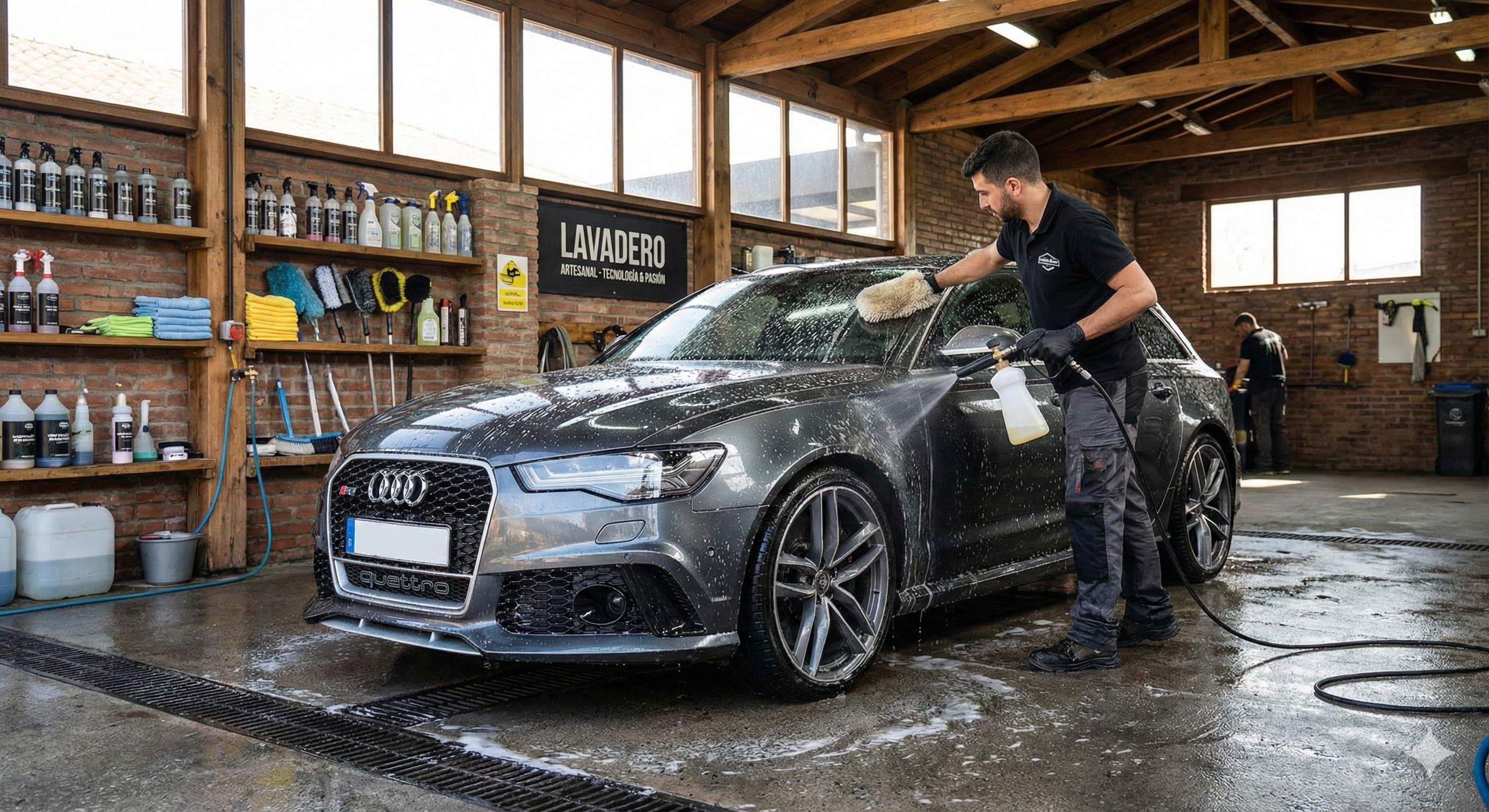 Aquí sucede la magia. Fusionamos productos de alta gama y tecnología avanzada con nuestra minuciosa técnica manual. Cuidamos cada rincón, interior y exterior, con pasión artesanal.